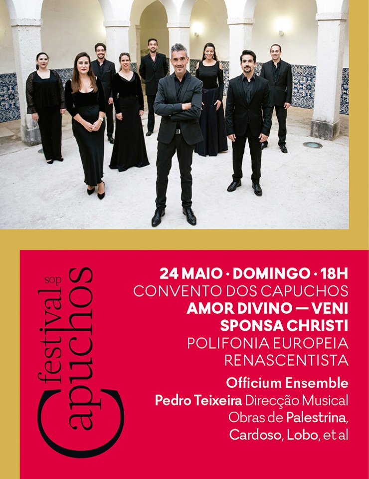 O coro Officium Ensemble apresenta um concerto dedicado ao tema do amor divino, centrado em obras sobre textos do Cântico dos Cânticos, livro poético do Antigo Testamento composto por diálogos amorosos entre dois amantes, que a tradição religiosa interpretou como símbolo do amor entre Deus e o ser humano. O título do concerto, Veni Sponsa Christi ("Vem, Esposa de Cristo"), inspira-se no célebre motete de Palestrina e na Missa homónima de Manuel Cardoso, que estabelecem diálogos fascinantes com as restantes obras do programa. O Officium Ensemble tem-se afirmado como um dos mais destacados grupos vocais portugueses da atualidade. A pureza e homogeneidade do seu som resultam de um rigoroso trabalho de fusão, emissão e equilíbrio desenvolvido desde a sua fundação, sob a direção de Pedro Teixeira.